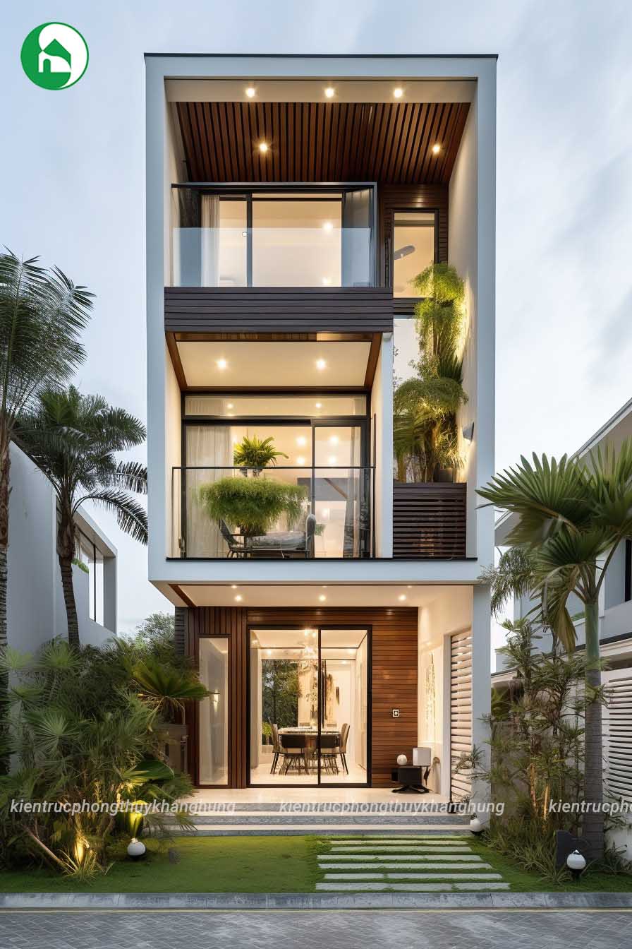Các mẫu thiết kế mặt tiền nhà ống thường được kết hợp với những vật liệu hiện đại như kính cường lực, gạch thông gió, và lam nhựa giả gỗ để tạo điểm nhấn và giúp không gian sống trở nên thông thoáng, gần gũi với thiên nhiên.