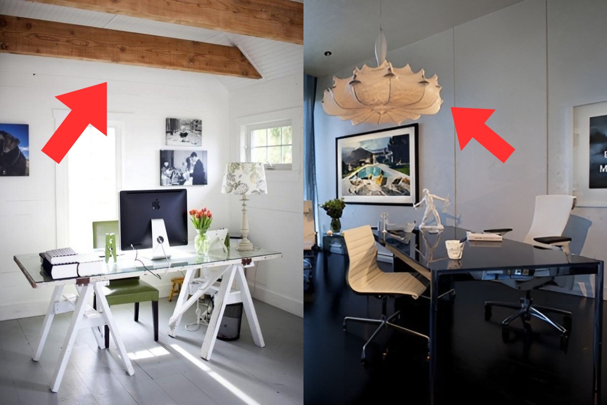 Tránh đặt bàn làm việc dưới quạt trần, đèn chùm