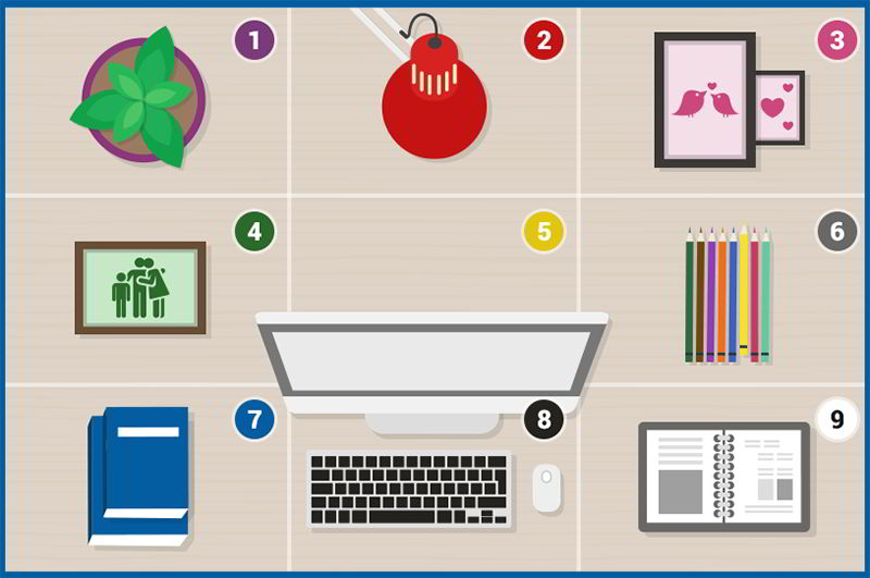 Sắp xếp vị trí các đồ vật trên bàn làm việc