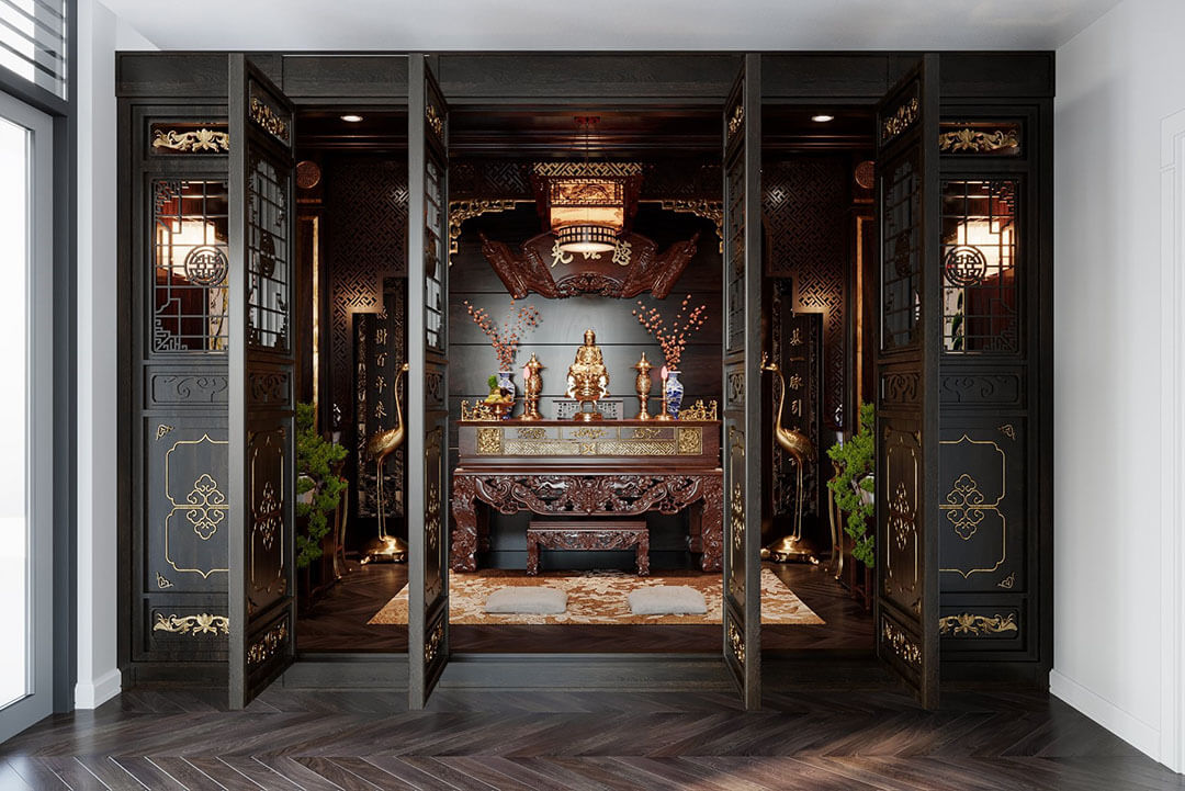 - Không đặt bàn thờ đối diện cửa chính: Điều này dễ làm thất thoát tài lộc và không tốt cho gia đạo.