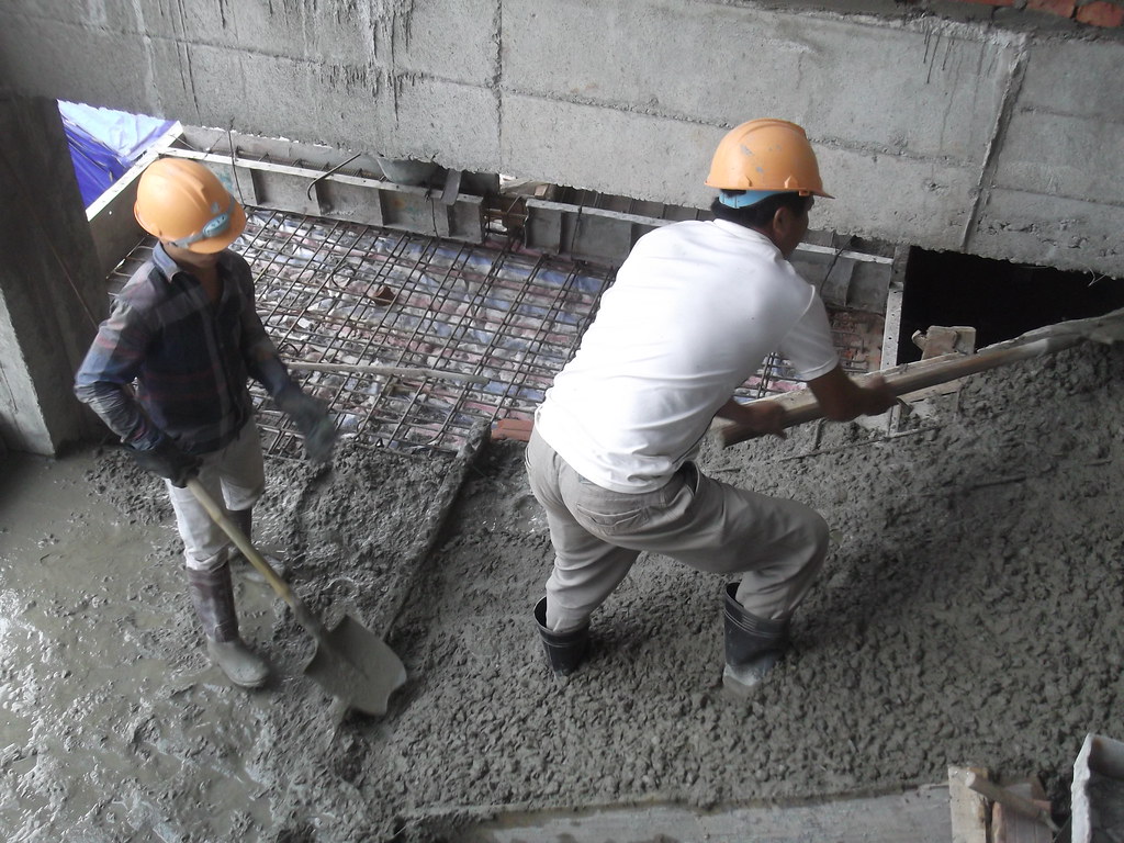 Đổ Bê Tông: Trước khi đổ bê tông, kiểm tra kỹ độ dốc của bản cốt thép. Sau đó, đổ bê tông và sử dụng tấm chắn để ngăn vữa bê tông chảy xuống đáy.