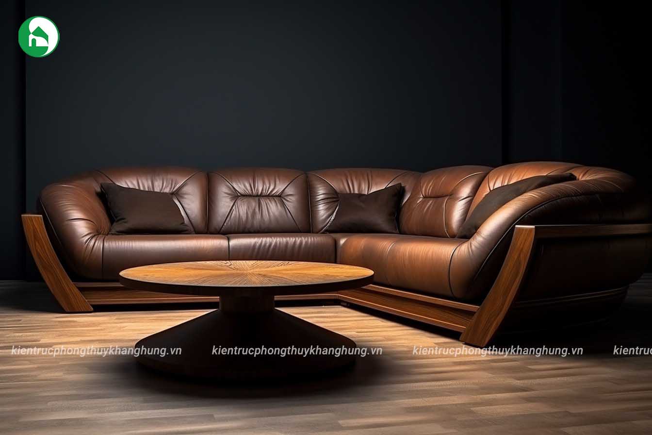 Sofa gỗ óc chó: Ghế sofa làm từ gỗ óc chó tạo không gian phòng khách ấm áp và thanh lịch. Các đường vân mềm mại của gỗ giúp ghế sofa trở nên nổi bật, thể hiện gu thẩm mỹ của gia chủ.