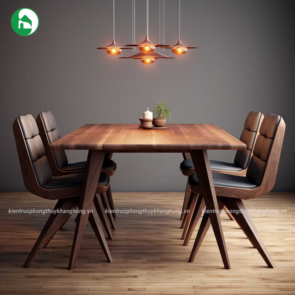Bàn ăn gỗ óc chó: Bàn ăn được làm từ gỗ óc chó không chỉ nâng cao thẩm mỹ cho không gian bếp mà còn chịu được va đập, dễ dàng vệ sinh.