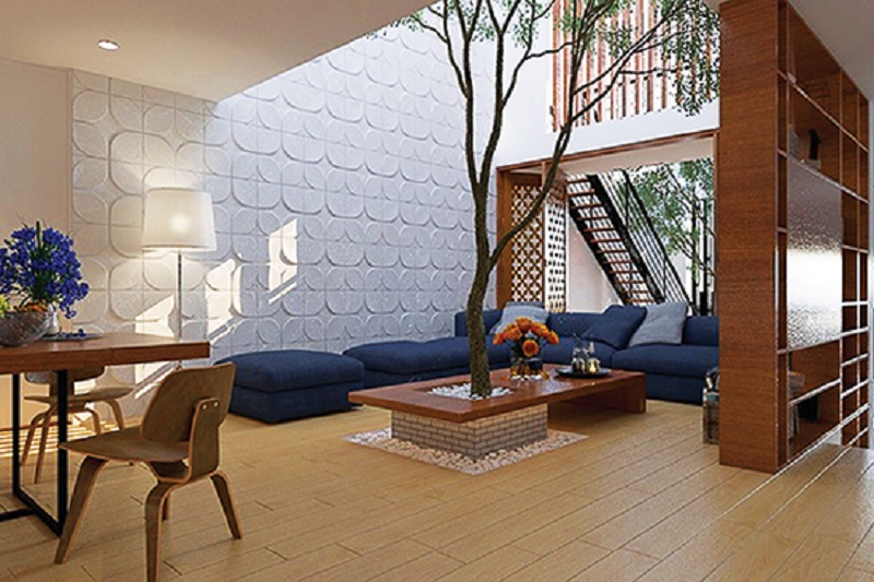 Giếng trời giải quyết vấn đề này bằng cách cung cấp ánh sáng tự nhiên và tạo sự thông thoáng cho không gian bên trong. Ánh sáng từ giếng trời có thể len lỏi qua từng tầng của ngôi nhà, mang lại không gian sống sáng sủa và thoáng đãng hơn. Đây không chỉ là giải pháp thẩm mỹ mà còn mang lại lợi ích về mặt sức khỏe và tiết kiệm năng lượng, giúp cải thiện chất lượng không khí bên trong nhà.