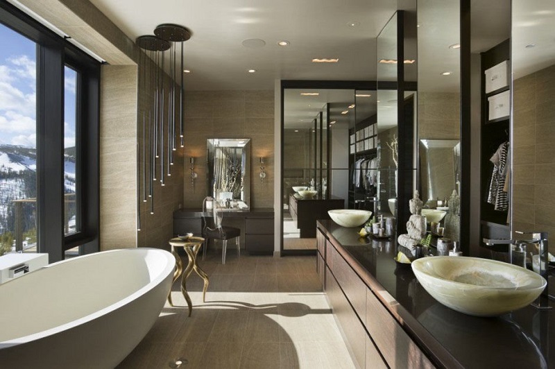 Các chuyên gia thiết kế nội thất khuyên dùng gương lớn hơn để tạo điểm nhấn cho không gian và lấp đầy những khoảng trống không mong muốn. Nếu phòng tắm đủ rộng, đặt một chiếc gương toàn thân sẽ làm tăng thêm vẻ đẹp và không gian cho không gian này.