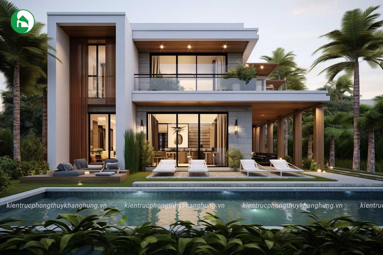 Các mẫu biệt thự nghỉ dưỡng tại Kiến Trúc Phong Thủy Khang Hưng được thiết kế theo phong cách hiện đại, với đường nét tối giản nhưng tinh tế. Không gian được bố trí mở, tạo sự liên kết giữa nội thất và cảnh quan thiên nhiên bên ngoài. Nội thất sang trọng, cao cấp nhưng vẫn đảm bảo sự tiện nghi cho cuộc sống hàng ngày.