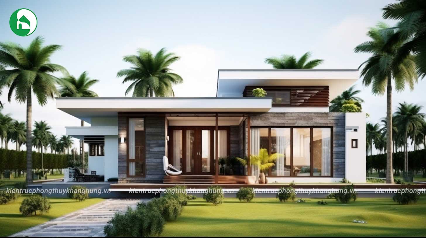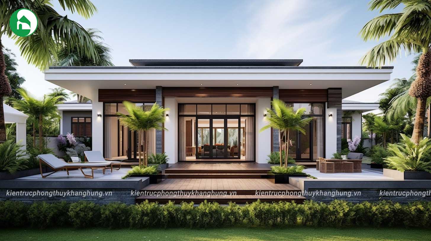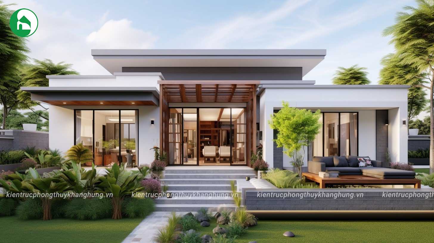 Mẫu nhà 1 tầng kết hợp với không gian vườn xanh mát đang là xu hướng dẫn đầu. Việc bố trí sân vườn với tiểu cảnh, cây xanh không chỉ mang lại vẻ đẹp thẩm mỹ mà còn giúp điều hòa không khí, tạo môi trường sống trong lành, thoáng đãng.