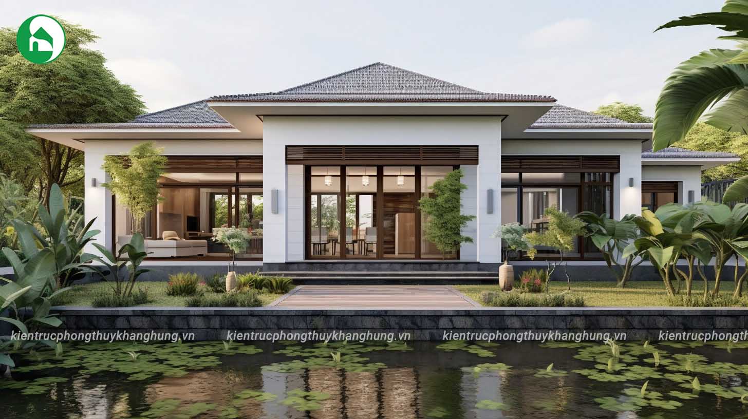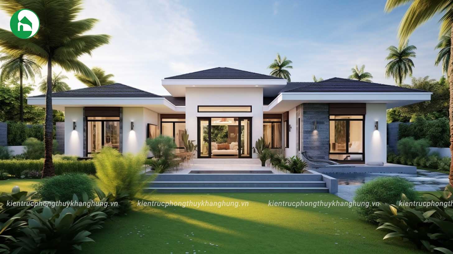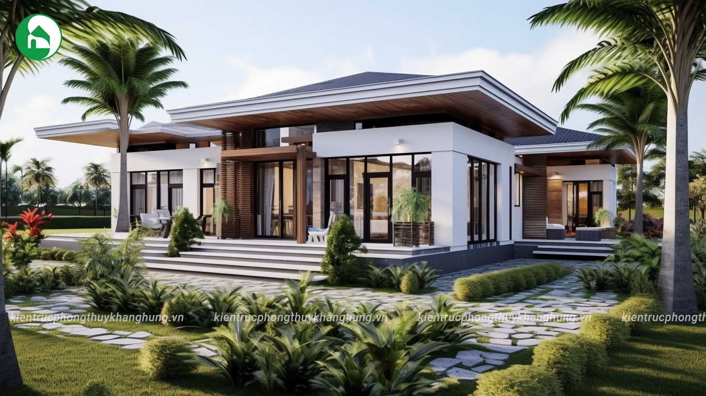 Mẫu nhà 1 tầng kết hợp với không gian vườn xanh mát đang là xu hướng dẫn đầu. Việc bố trí sân vườn với tiểu cảnh, cây xanh không chỉ mang lại vẻ đẹp thẩm mỹ mà còn giúp điều hòa không khí, tạo môi trường sống trong lành, thoáng đãng.
