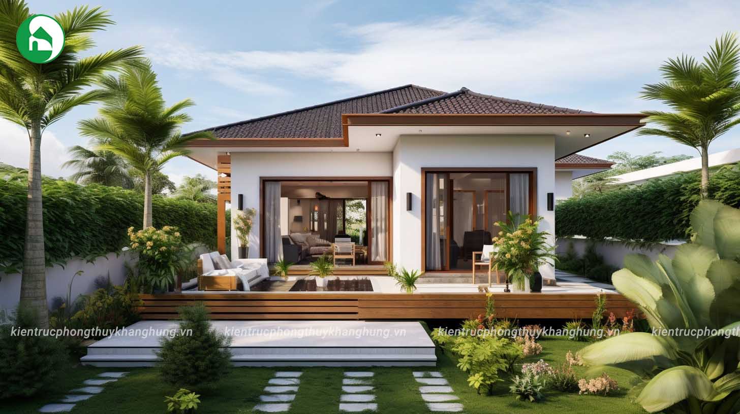 Kết luận: Nhà mái Nhật 1 tầng không chỉ phù hợp với thị hiếu thẩm mỹ hiện đại mà còn mang lại không gian sống tiện nghi và thoải mái. Hi vọng bài viết này của Kiến Trúc Phong Thủy Khang Hưng sẽ giúp bạn có thêm ý tưởng để xây dựng tổ ấm lý tưởng của mình.