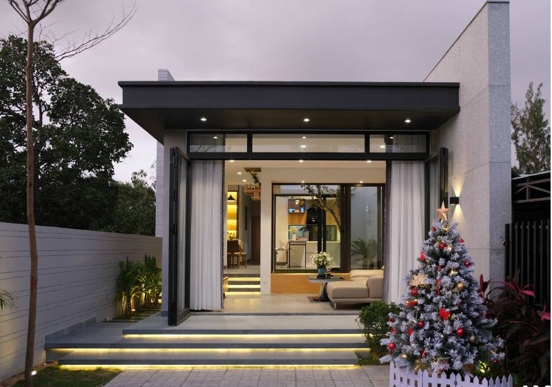 Kiểu thiết kế này sử dụng các ô cửa lớn để tạo ra không gian thông thoáng và đón ánh nắng tự nhiên đã giúp ngôi nhà trở nên sang trọng và thoáng đãng. Thiết kế này không chỉ tạo điểm nhấn cho ngôi nhà mà còn tăng cường kết nối giữa bên trong và bên ngoài, tạo môi trường sống hiện đại và tiện nghi cho gia đình.