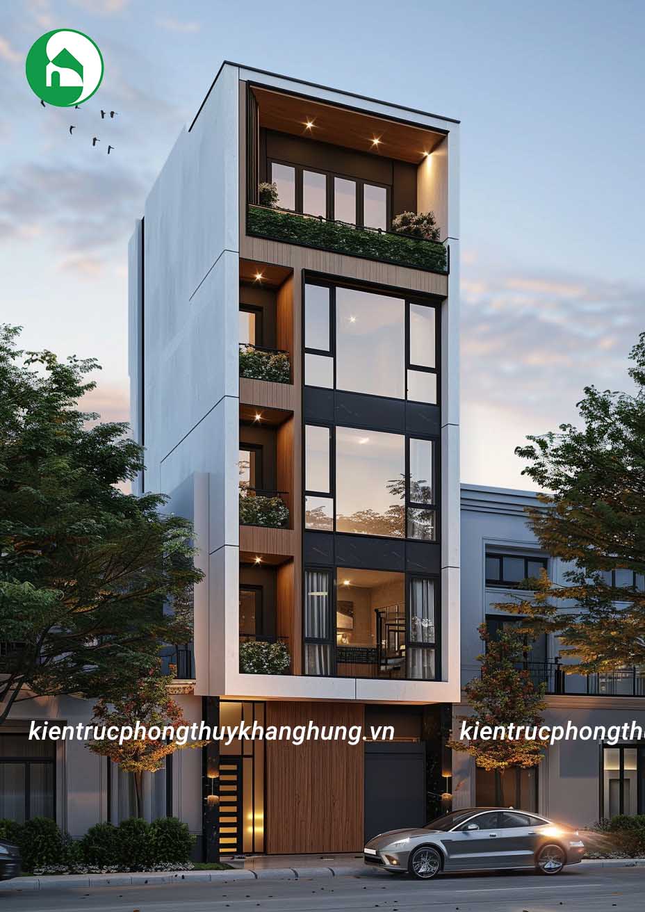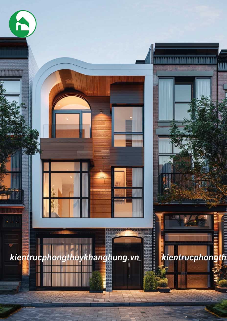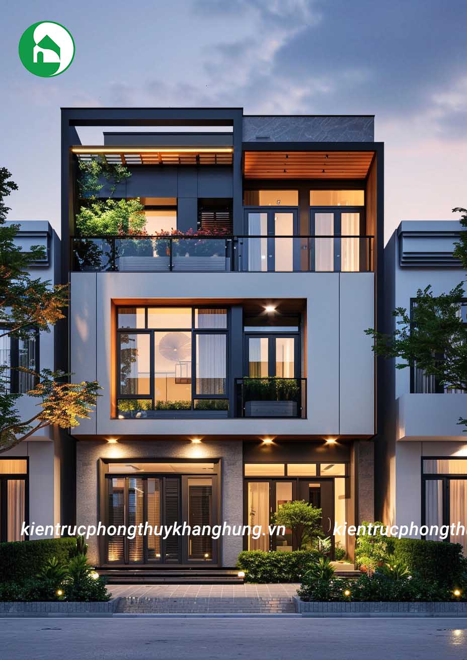 Những mẫu thiết kế nhà phố đẹp hiện đại của Kiến Trúc Phong Thủy Khang Hưng mang lại sự hài hòa giữa thẩm mỹ và công năng, đáp ứng nhu cầu sống tiện nghi, thoáng đãng trong không gian đô thị. Những mẫu nhà này thường kết hợp giữa các yếu tố hiện đại, đơn giản nhưng vẫn đảm bảo tối đa ánh sáng tự nhiên và sự thông thoáng.