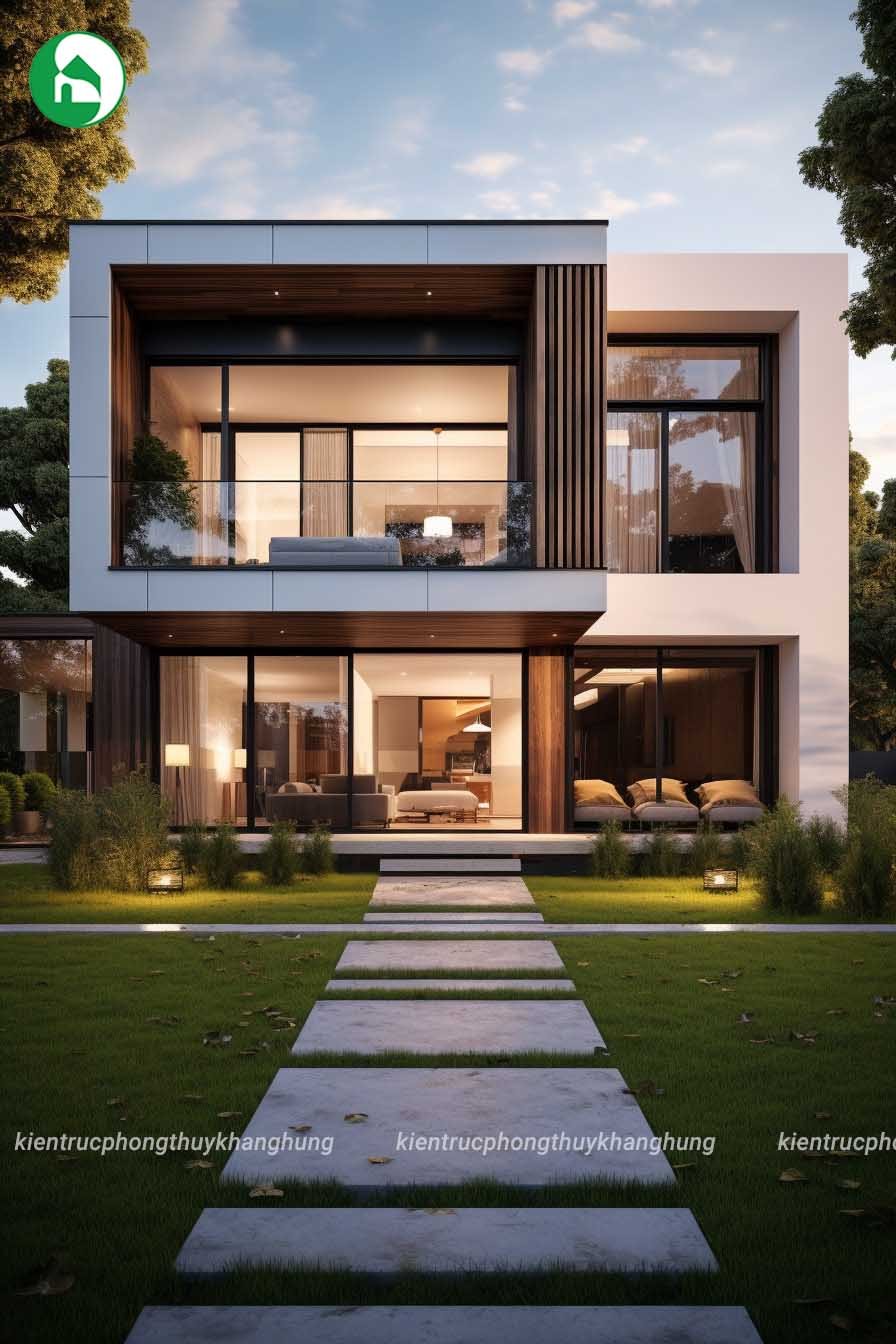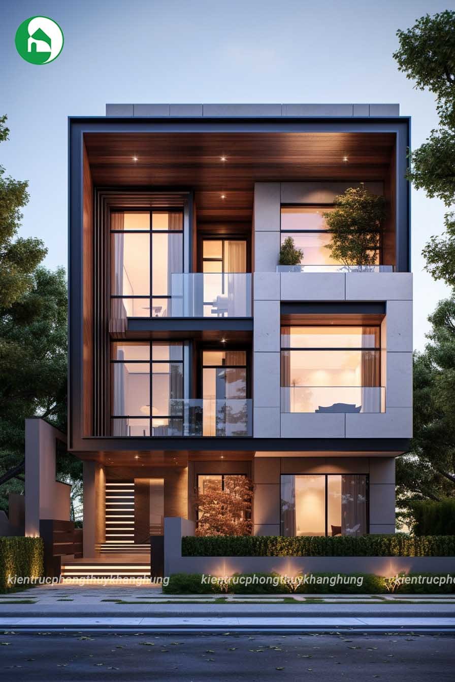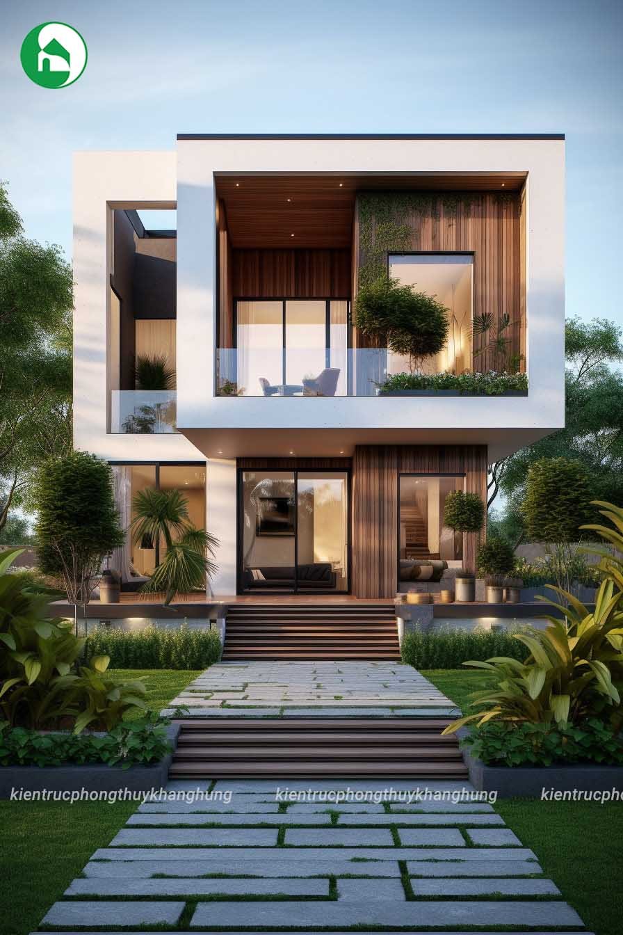 Ngoài ra kiểu thiết kế này cũng sử dụng các khối hình hộp, tạo nên vẻ đẹp đơn giản nhưng sang trọng. Sự linh hoạt trong cách bố trí không gian giúp tối ưu hóa việc sắp xếp các khu vực chức năng bên trong căn nhà. Sự thông thoáng từ mặt tiền cũng giúp hạn chế ánh nắng trực tiếp vào nhà, tạo cảm giác thoải mái và mát mẻ hơn cho không gian bên trong.