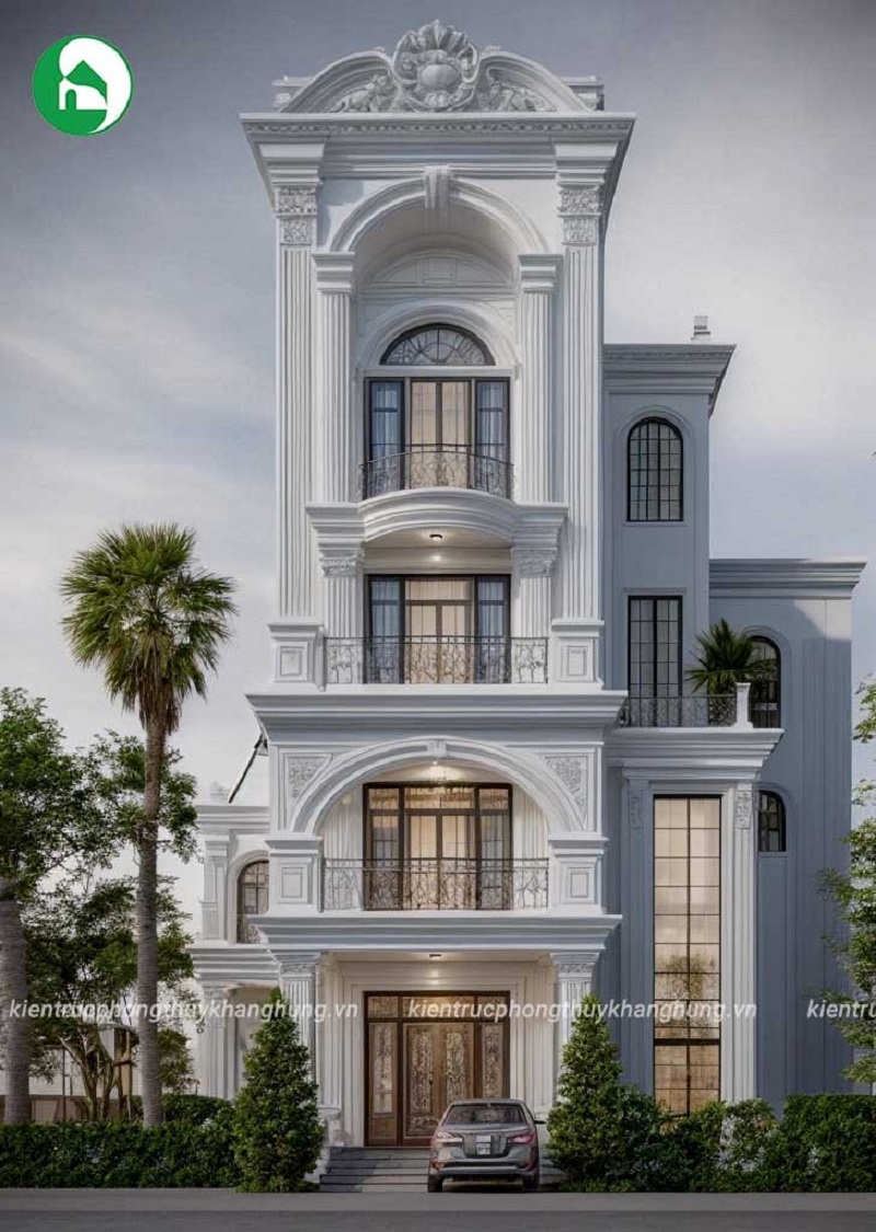 Mẫu nhà phố tân cổ điển đẹp 4 tầng có mặt tiền 5m