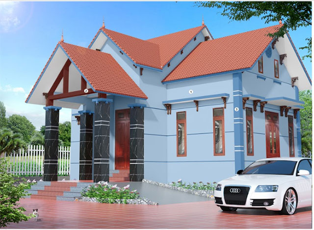 - Kết Hợp Màu Sắc: Sử dụng màu trắng làm chủ đạo, điểm nhấn là các mảng màu xanh hoặc xám, giúp ngôi nhà cân đối và hài hòa.