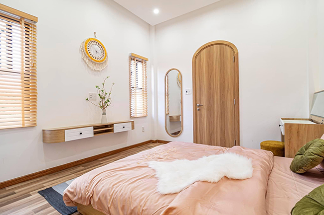 Cách hóa giải: Nếu không thể di chuyển giường, hãy sử dụng bình phong hoặc tấm rèm để ngăn cách không gian giữa cửa và giường ngủ.