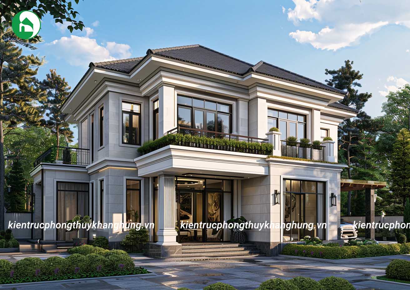 Nhà vườn 2 tầng mái Nhật này mang đậm phong cách tân cổ điển, kết hợp hài hòa giữa sự thanh lịch và hiện đại. Kiến trúc ngôi nhà được thiết kế vững chãi với các chi tiết tinh tế và tỉ mỉ, tạo điểm nhấn sang trọng. Mái Nhật thanh thoát cùng với tông màu trung tính làm toát lên vẻ đẹp trang nhã và tinh tế. Không gian xung quanh được phủ xanh với cây cảnh và các tiểu cảnh tạo cảm giác bình yên và gần gũi với thiên nhiên. Đây là không gian sống lý tưởng cho gia đình yêu thích sự thanh lịch và quý phái.