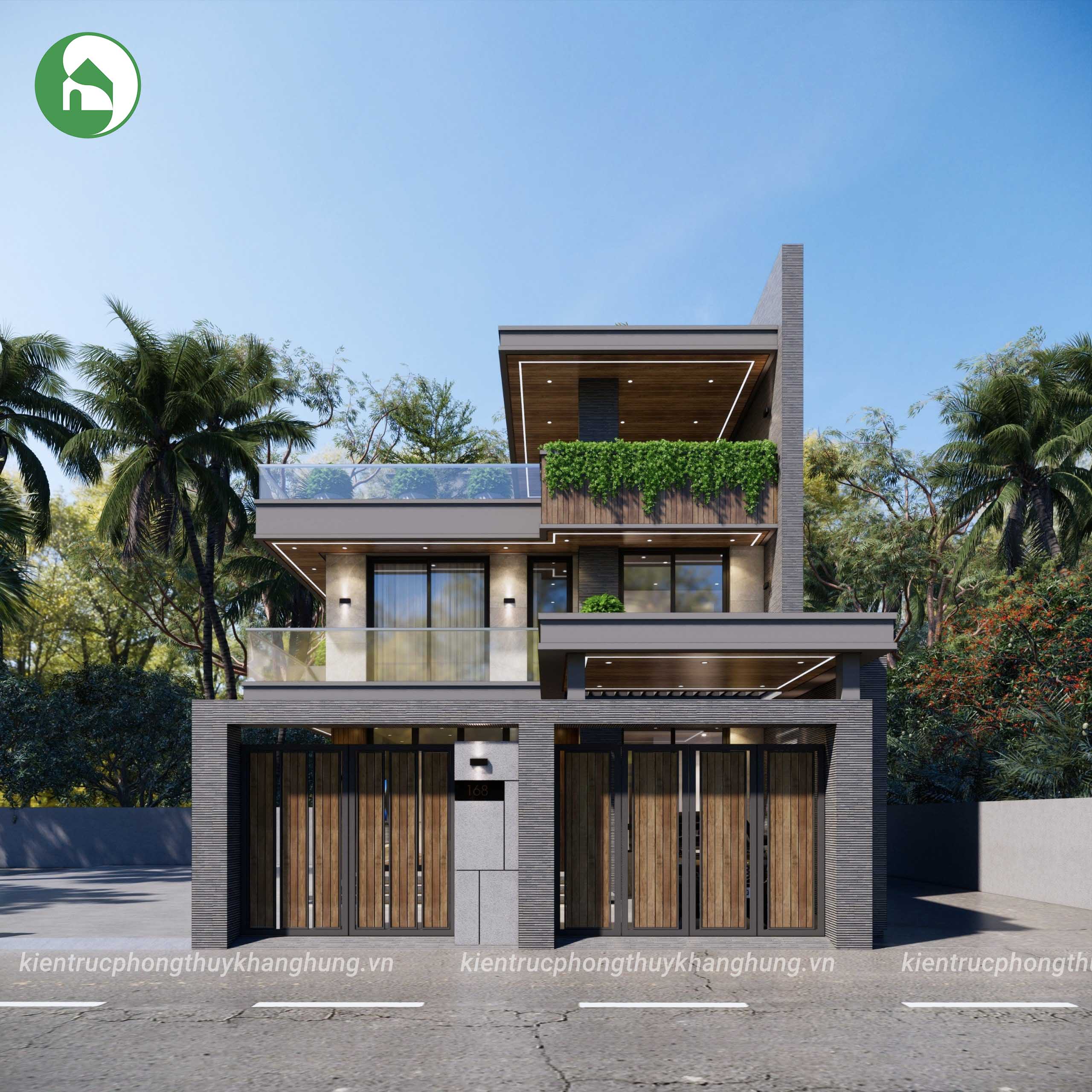 - Mẫu nhà 3 tầng 1 tum phong cách hiện đại: Thiết kế với không gian mở, kết hợp sân thượng và cây xanh, tạo cảm giác thoáng đãng và mát mẻ.