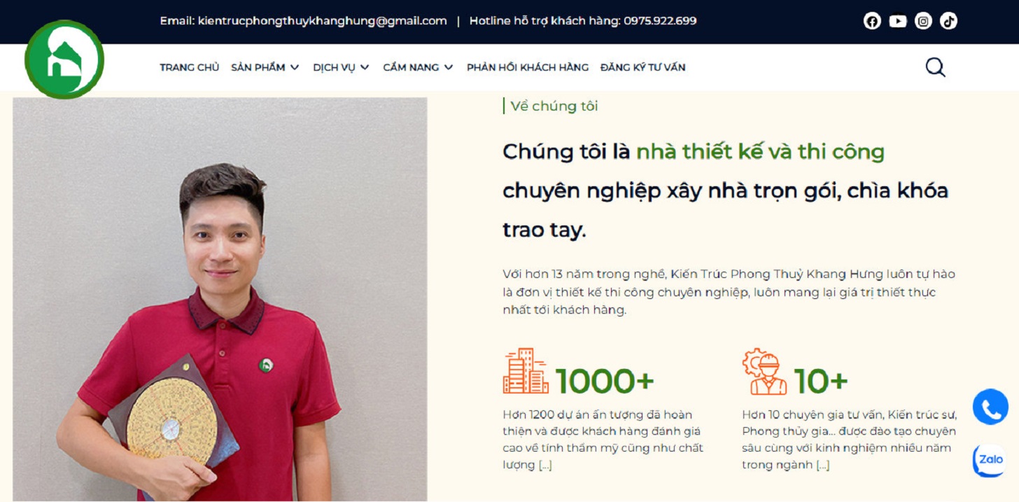 Kiến Trúc Phong Thủy Khang Hưng - đơn vị thiết kế uy tín tại Hà Nội, đã góp phần làm nổi bật bức tranh kiến trúc đô thị bằng những tác phẩm nghệ thuật độc đáo và sang trọng. Chúng tôi không chỉ là những kiến trúc sư tài năng mà còn là những người đam mê, tận tâm với sứ mệnh để tạo ra không gian sống lý tưởng và hài hòa với thiên nhiên.