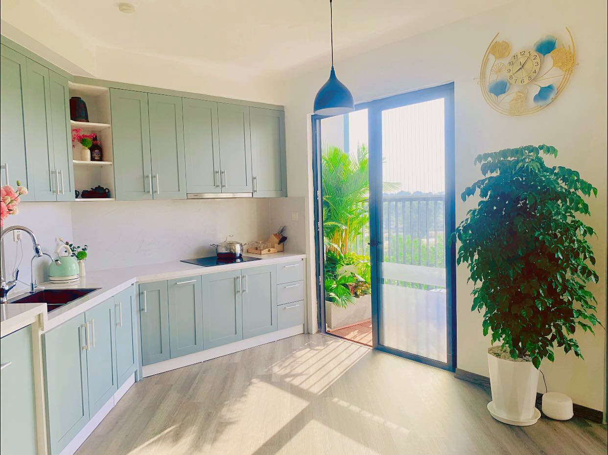 Ánh sáng tự nhiên không chỉ tốt cho sức khỏe mà còn giúp lưu thông khí tốt, mang lại sinh khí cho cả căn bếp.