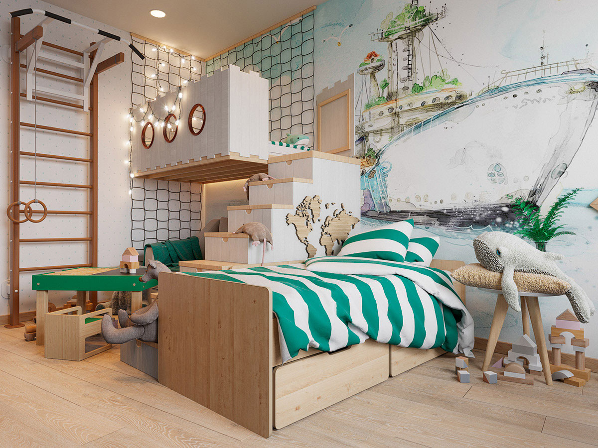 Phòng trẻ cần được thiết kế đa chức năng, đáp ứng nhu cầu nghỉ ngơi, học tập và vui chơi. Một số lưu ý về công năng: