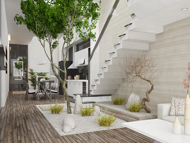 Khoảng không gian thông tầng có diện tích lớn, mang lại cơ hội tuyệt vời để tận dụng không gian này cho nhiều mục đích. Một trong những cách là thiết kế một tấm lưới mắt cáo chắc chắn, biến không gian này thành khu vui chơi an toàn cho trẻ em. Ngoài ra, có thể xem xét việc lắp đặt một bể cá dưới thông tầng, tạo điểm nhấn độc đáo và thư giãn. Một ý tưởng khác là sử dụng không gian này để trồng cây xanh hoặc tạo tiểu cảnh, mang đến một không gian xanh mát và hài hòa cho ngôi nhà.